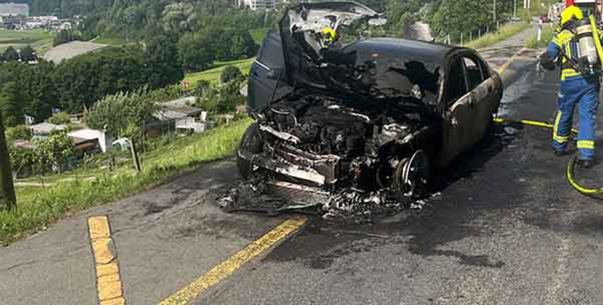 Am Sonntagnachmittag (05.12.2021) hat an der Tellstrasse ein Auto gebrannt. Verletzt wurde niemand. Am Fahrzeug entstand Totalschaden.