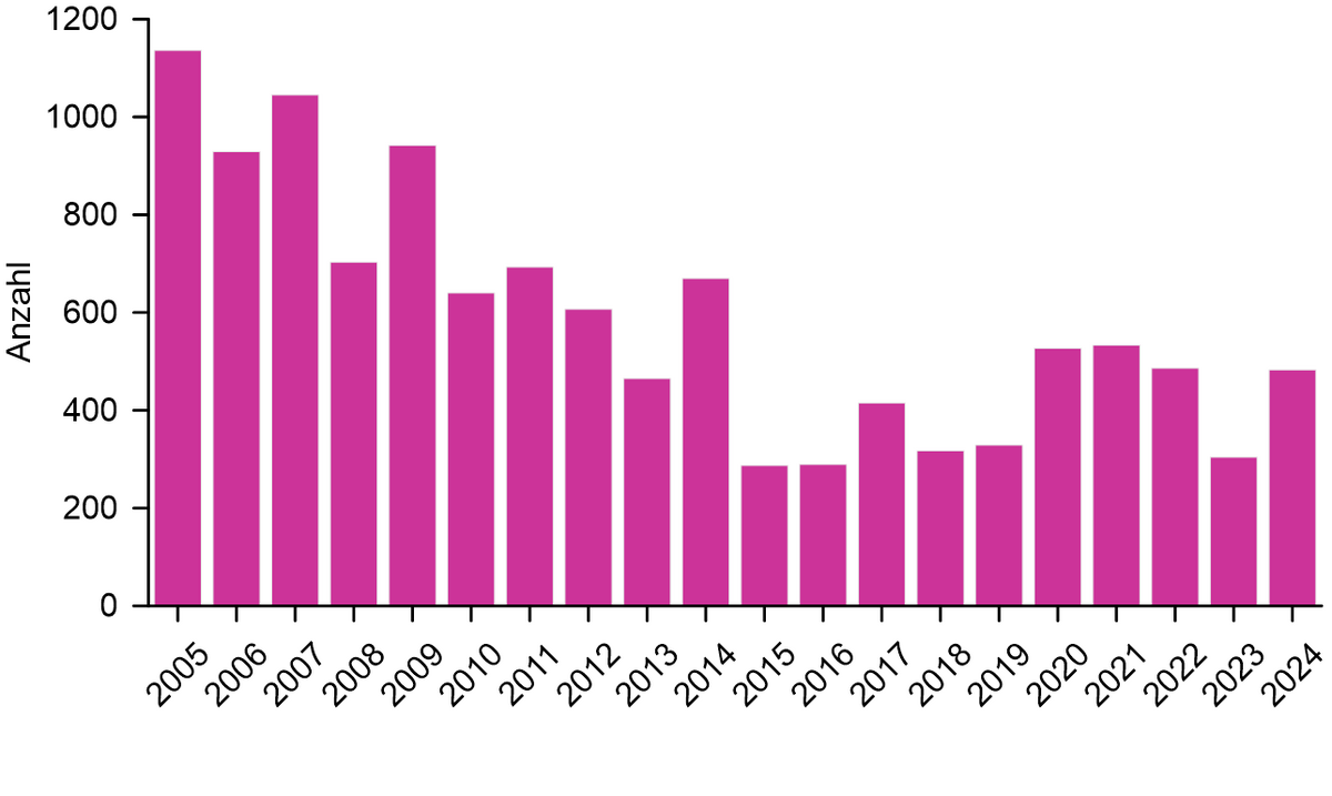 Zwischen 2005 und 2015 ist die Anzahl der Brände in landwirtschaftlichen Betriebsgebäuden kontinuierlich zurückgegangen. Seit 2016 ist jedoch eine Stagnation erkennbar. Im Durchschnitt verzeichneten die 19 Gebäudeversicherungen in den letzten zehn Jahren jährlich 400 Brände in landwirtschaftlichen Betriebsgebäuden. Hochgerechnet auf die ganze Schweiz, sind dies rund 500 Brände pro Jahr.