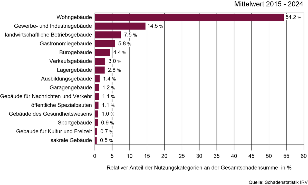Rückblickend auf die letzten zehn Jahre und hochgerechnet auf die gesamte Schweiz ergibt sich folgende Schätzung: Von 2015 bis 2024 ereigneten sich durch Brände schweizweit im Jahresschnitt rund 11'000 Fälle von Schäden an Gebäuden. Dabei entstanden Schäden im Wert von rund 325 Millionen Franken pro Jahr.